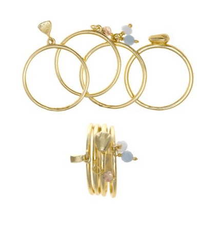 ANILLO EN ORO PLATEADO CON CUATRO CUENTAS DE CUARZO FRESA, ÁGATA BLANCA Y AZUL MARINO.