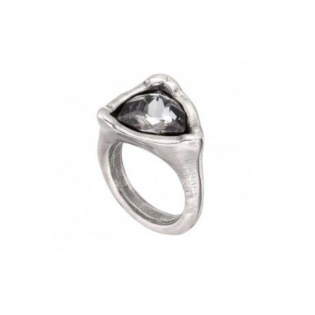 Anillo UNOde50 de metal bañado en plata y elemento Swarovski color gris. TALLA 15