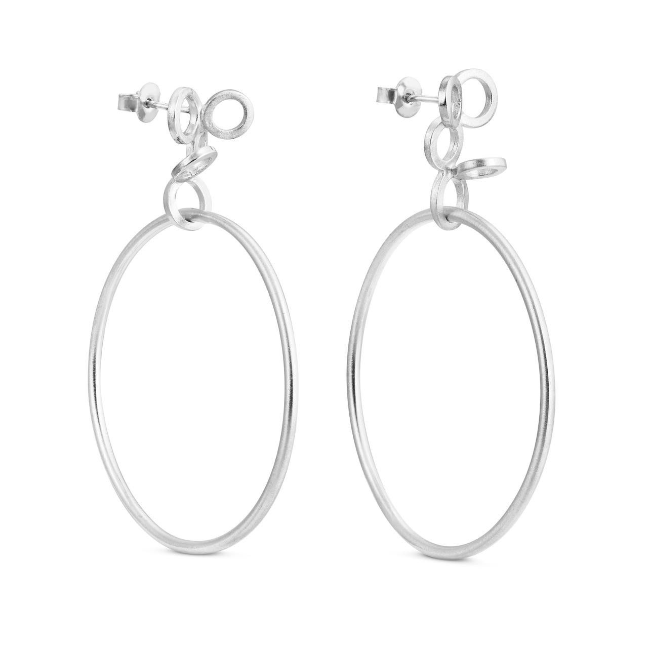 Plata mate con baño de rodio. Pendientes de perno grandes con círculo de cuelga.