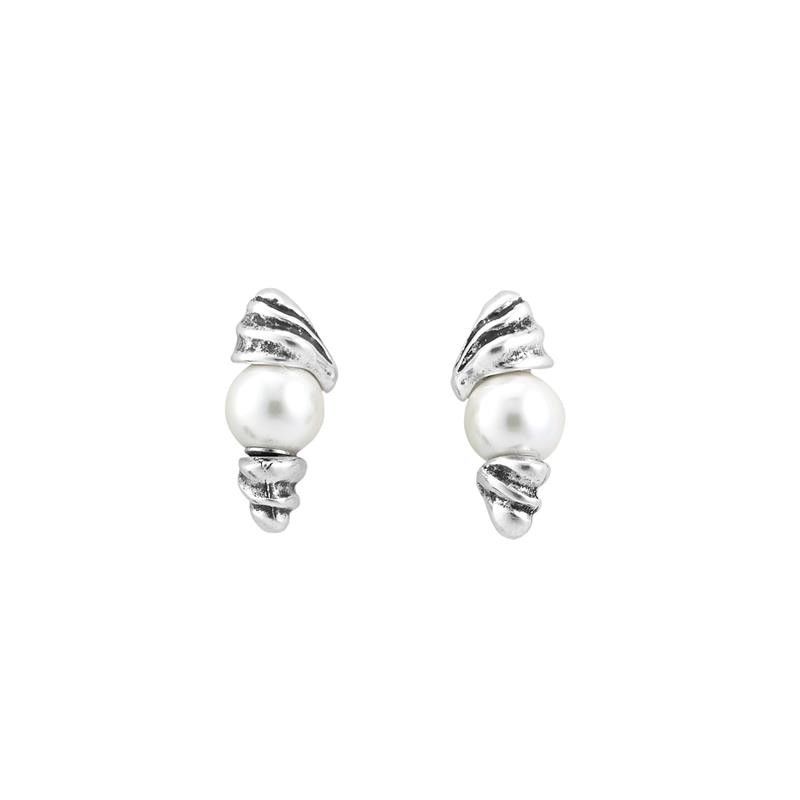 Estos pendientes Unode50 de metal bañado en plata están inspirados en las dunas del desierto. Una joya en la que se unen distintas piezas con una perla central. Un diseño original y sofisticado para lucir como un oasis de elegancia en tu look. Elaborada de forma artesanal en España.