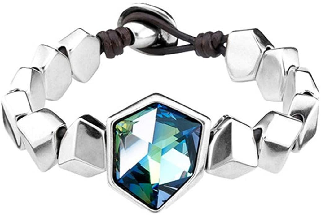 Pulsera de varias piezas bañadas en plata con un cristal central de SWAROVSKI® ELEMENTS en color azul Sahara.