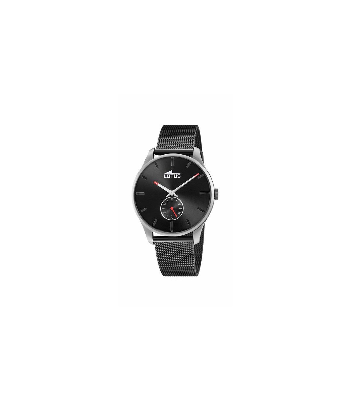 Elegante reloj de caballero con un diseño de lineas limpias, segundero a las 6. La caja está matizada, es original y diferente. La cadena de esterilla de acero con IP negro combina a la perfección con la caja.