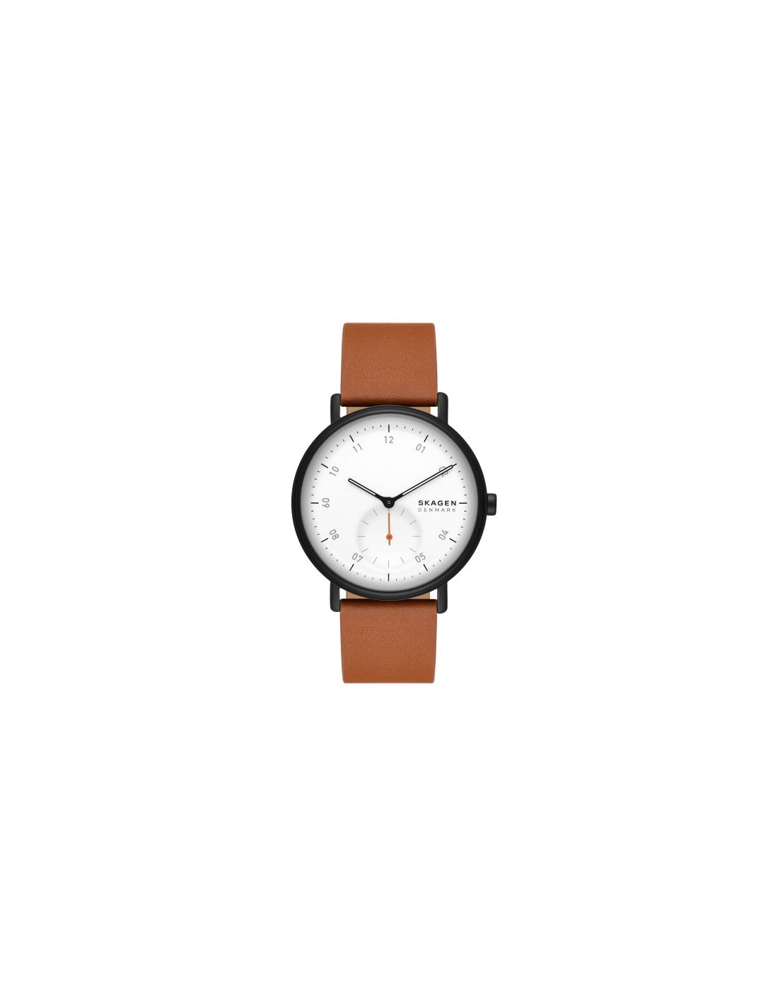 Reloj Skagen Kuppel Hombre SKW6889 con movimiento de cuarzo, caja de 44 mm color negro, esfera color blanca y correa de piel marrón con cierre de hebilla.