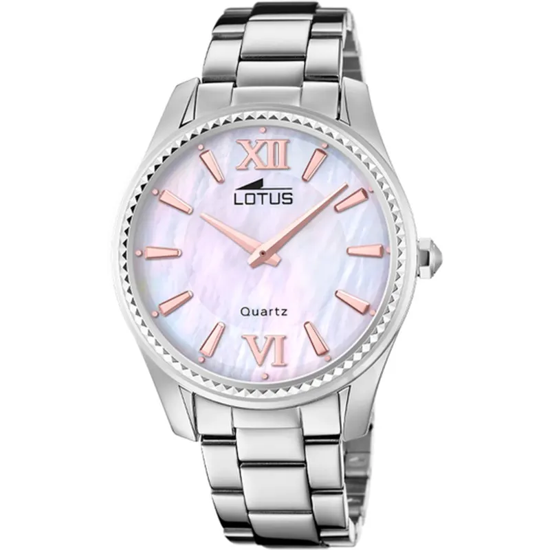 Reloj Lotus Mujer 18898/A Acero. Caja de acero de 38mm. Bisel de acero. Brazalete de acero. Cierre desplegable. Esfera lila. Cristal mineral. Movimiento quartz. Sumergible 50m