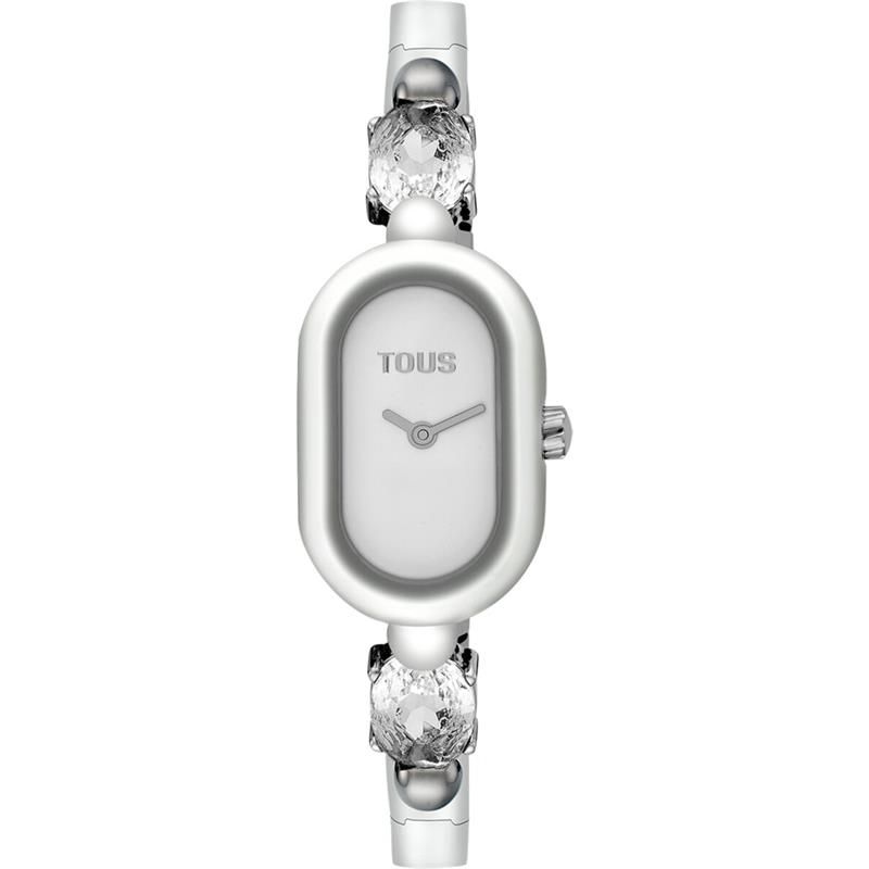 Reloj TOUS Watches para mujer de la colección TOUS Color fabricado en acero inoxidable plateado con cristal de roca. Este atractivo reloj cuenta con caja ovalada que contiene esfera plateada al igual que sus agujas movidas por mecanismo de cuarzo analógico. Todo ello protegido por cristal mineral. Su brazalete es de acero inoxidable plateado con piedras cristal de roca. Cuenta con cierre de joyería y es resistente al agua hasta 3 ATM.