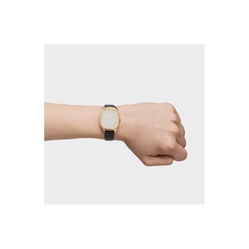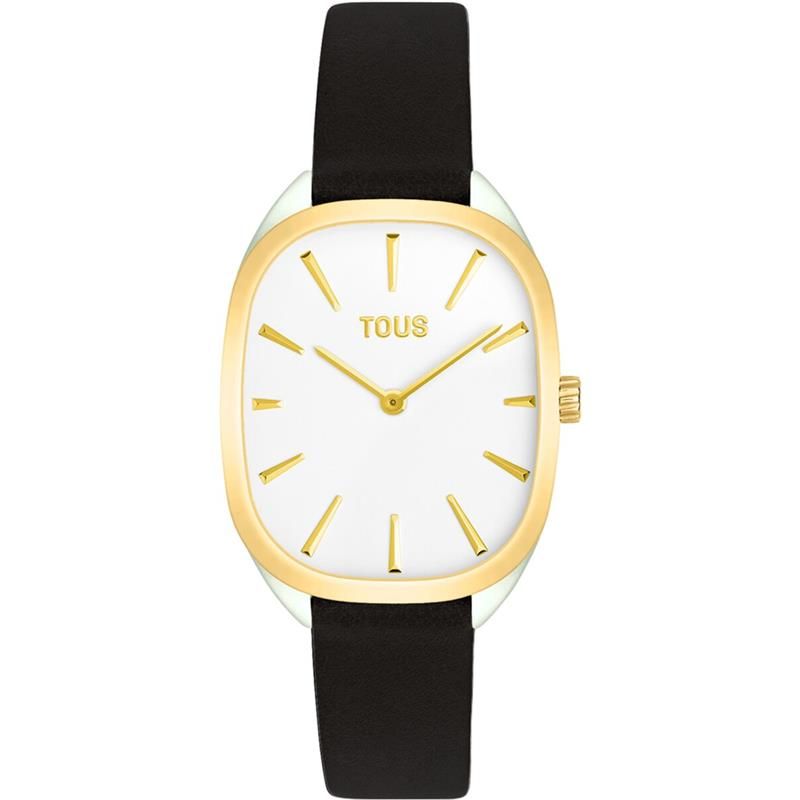 Reloj TOUS para mujer de la colección Heritage fabricado en acero inoxidable dorado y plateado y piel en color negro. Estamos ante un reloj de diseño elegante y atractivo compuesto por caja rectangular en plateado y dorado de 30mm de ancho con esfera plateada que cuenta con indicadores y agujas en plateado movidas por mecanismo de cuarzo analógico protegido por cristal mineral. Su correa es de piel en color negro con cierre de hebilla. Resistente al agua hasta 3 ATM.
